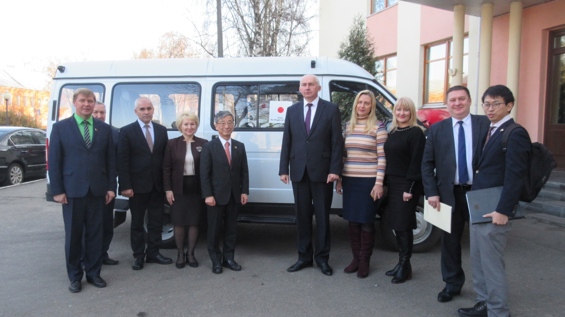11月14日、ヴィテプスク地区社会福祉センターで、草の根・人間の安全保障無償資金協力による「ヴィテプスク地区社会福祉センター特別車両整備計画」の供与式が行われました。